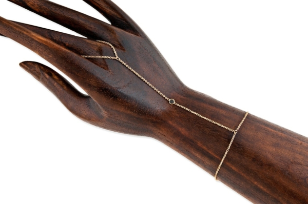 An elegant choice made for everyday wear, this unique black diamond-flecked finger bracelet with a durable, but dainty 14k chain is a multifaceted addition to one’s jewelry collection.